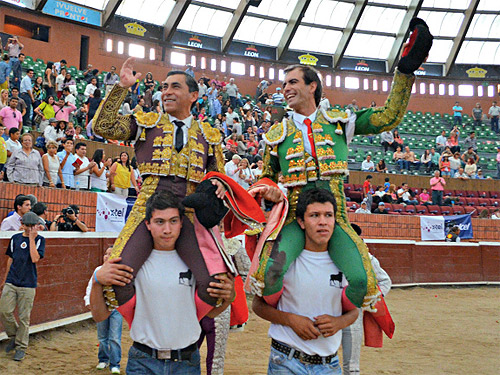 Eulalio López "Zotoluco" y Arturo Macías compartieron la salida en volandas del Palacio del Arte, en Morelia, luego de cortar tres y dos orejas respectivamente en lo que fue una entretenida tarde de toros, mientras que Pepe López no tuvo suerte.