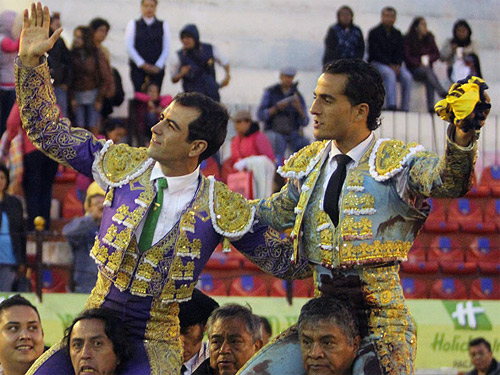 Pachuca, Hgo.- Plaza “Vicente Segura”. Noveno festejo y séptima corrida de la Feria Internacional San Francisco. Floja entrada (unas mil 900 personas), en tarde nublada, templada, y con lluvia intermitente en la lidia de varios toros.Seis toros de Medina Ibarra, anovillados, de escasa presencia, por lo que fueron protestados. En general sacaron nobleza, algunos se dejaron más, sobresaliendo el lidiado en segundo lugar, que quizá merecía el homenaje del arrastre lento. Uno de La Venta del Refugio, de regalo, que se dejó torear. Pesos: 450, 440, 420, 430, 435, 450 y 460 kilos. Arturo Macías (obispo y oro): Oreja y oreja. Iván Fandiño (celeste y oro): Oreja, silencio y dos orejas en el de regalo. Sergio Flores (espuma de mar y oro): Silencio y oreja.Incidencias: la empresa hizo entrega del premio al grupo triunfador de la corrida de concurso de pegas celebrada la semana anterior, y fue a la realizada por Juan de Dios Corona, del grupo de Forcados Amadores de Hidalgo, recibiéndolo tanto el forcado señalado, como el cabo, Osvaldo Escamilla.