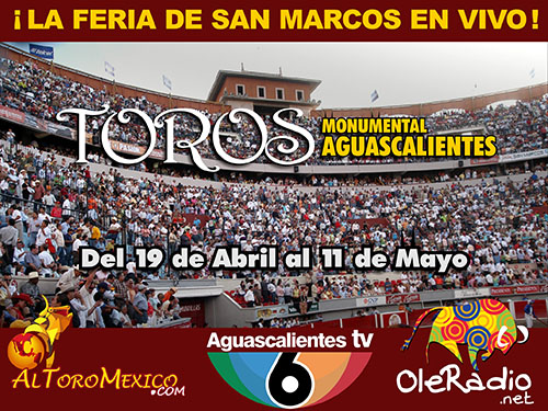 Al Toro México, así como Olé Radio, su plataforma de audio, en alianza con Aguascalientes TV, harán una amplia cobertura de la Feria de Aguascalientes a partir de este sábado, de la que destaca la transmisión en vivo de cada uno de los 16 festejos del ciclo sanmarqueño.