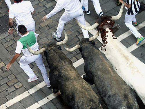 El encierro de hoy resultó emocionante y en el que se vieron carreras limpias. Los toros prácticamente se mantuvieron en manada durante todo el trayecto y hubo también momentos accidentados, con tropiezos y caídas por parte de varios mozos en la cara de los ejemplares.