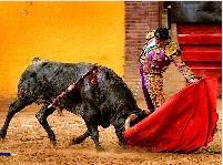 Su faena de muleta parecía tomar vuelo, pues el novillo se dejaba y las dos primeras tandas con la derecha le salieron pintaditas a un Conrado que, en un primer momento, dejó de lado el tremendismo e intentó torear largo y por bajo. Pero decíamos, su faena, buena a secas, no alcanzó a explotar debido a que no llega a cuajar su toreo, y es entonces cuando el torero acortó distancias y se llevó una voltereta tremenda.