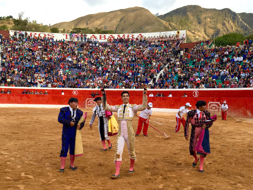 Tacabamba, Perú.- Segunda corrida de feria. Lleno absoluto. Seis toros de San Pedro, de juego desigual, entre los que destacó el 5o., que fue indultado.