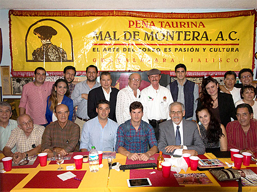 A la reunión organizada como parte de las actividades culturales de la Mesa Directiva 2015-2016 que preside Luis E. Naranjo, asistieron acompañando al diestro español su apoderado Juan Ruiz Palomares, su mozo de estoques Sergio Durán Luque y el novillero tapatío Arturo de Alba.