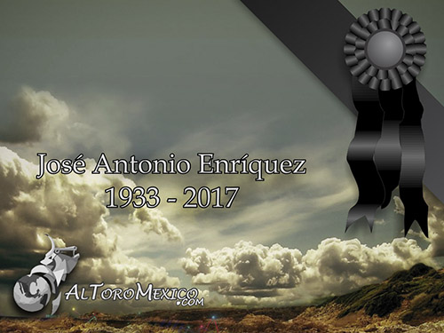 Murió en una clínica de la ciudad de Zacatecas el que fuera novillero y empresario taurino José Antonio Enríquez. Nacido el 15 de septiembre de 1933, fue un destacado novillero que tuvo sus mejores años en temporadas tanto en El Toreo de Cuatro Caminos como en La México.