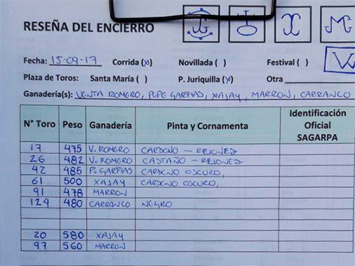 Los toros de diversas ganaderías que serán lidiados en el primer festejo de fiestas patrias, en Juriquilla fueron sorteados hoy en los corrales del coso queretano, y a continuación les presentamos sus características y orden de lidia.