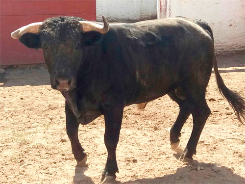 No. 75, negro entrepelado listón nevado, delantero bizco del pitón izquierdo, con 475 kilos.