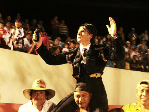 a hombros esta tarde al final de la corrida celebrada en Kantunilkín,
