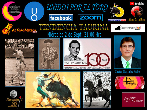 Xavier González Fisher será el protagonista de la próxima charla virtual dentro del ciclo "Unidos por el Toro" que tendrá verificativo este miércoles 2 de septiembre, el investigador taurino abordará a Carlos Arruza como eje temático donde se develarán los pasajes de mayor relevancia del torero mexicano.