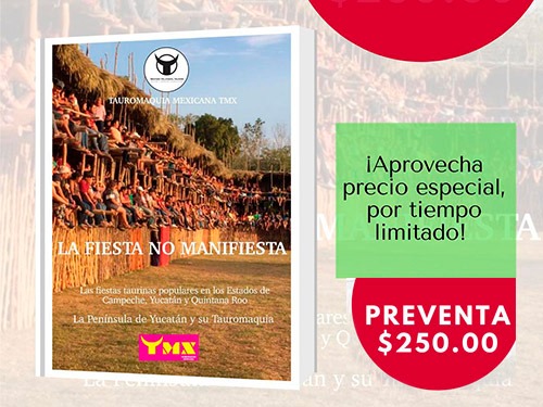 Tauromaquia Mexicana dio a conocer que inició la preventa del libro: "La Fiesta no Manifiesta. La Península de Yucatán y su Tauromaquia", el cual tendrá un costo de 250 pesos durante las próximas dos semanas, esto con el fin de promover la cultura taurina entre los aficionados e investigadores.