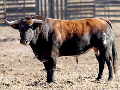 No. 121, "Pariente", castaño bragado, paliabierto, con 490 kilos.