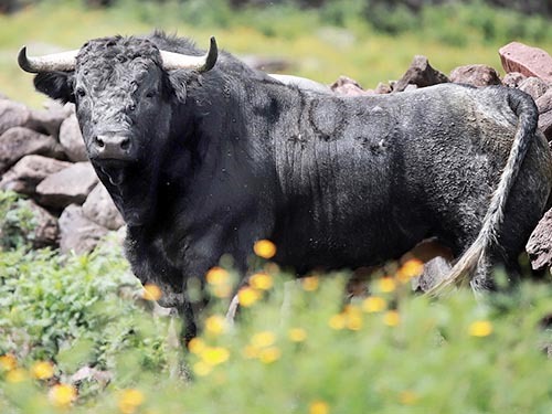 No. 111, cárdeno oscuro, bragado, meano, vuelto tocado del pitón derecho.