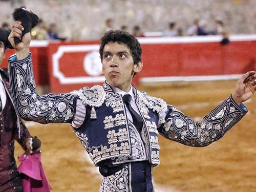 César Pacheco (foto) y César Ruiz cortaron una oreja por coleta en la novillada de fiestas patronales que se realizó el día de hoy en Yuriria, donde los jóvenes superaron la prueba ante el bien presentado encierro de Santillán, destacando también la labor de Franco Serratos que dio una vuelta al ruedo.
