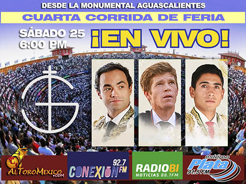La cuarta corrida de la Feria de Aguascalientes será en honor de San Marcos, en su día de fiesta, y con un atractivo cartel compuesto por