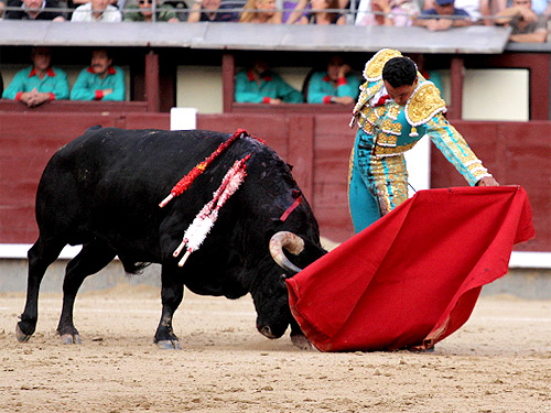 Y así como decía el maestro Antoñete que las grandes faenas debían componerse de más muletazos de oro, que de plata o de cobre, aquí pasó al revés: hubo más de lo último. A un toro como éste había que torearlo con el corazón por delante y muchos arrestos. Porque toros como "Pistolero" encumbran a un torero y le abren las puertas de la gloria, sobre todo en una plaza como la de Madrid.