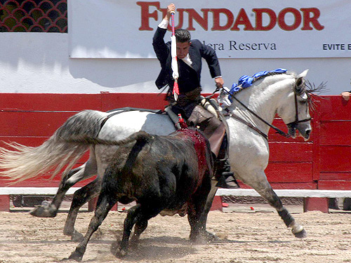 Atizapán de Zaragoza, Estado de México.- Centro caballar "Los Azulejos". Plaza Conchita Cintrón. Corrida de rejones. Toros de San Judas Tadeo para Horacio Casas y Andrés Rozo, acompañados por los Forcados de México y los Forcados de Querétaro.