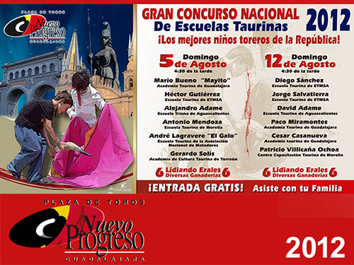 El domingo 5 de agosto, a partir de las 16:30 horas, arrancará la actividad taurina en la plaza de toros "Nuevo Progreso" de Guadalajara, y este año se prolongará por quince domingos de toros en forma consecutiva, ofreciendo igual número de festejos a los aficionados.