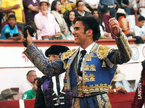 Ricardo Frausto sigue demostrando que su carrera esta para mayores cosas, con su primero ha dimensionado su personal manera de interpretar el toreo. Con una faena que fue precedida de elegantes lances con el capote, el de Aguascalientes corrió la mano por ambos lados; poco a poco fue sometiendo al novillo hasta terminar por imponer sus condiciones y con ello estructurar una faena de calidad, después de ejecutar una estocada efectiva saludó con fuerza en el tercio.
