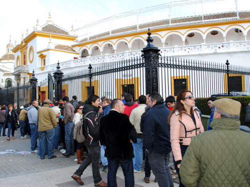 Muchos aficionados han estado apostados cerca de la reja que separa el Paseo de Colón de las taquillas desde primeras horas de la madrugada. A partir de las 10:00 horas se han puesto a la venta las entradas de los espectáculos taurinos que comenzarán el próximo día 31 de abril en la Real Maestranza de Caballería de Sevilla con la clásica Corrida de Resurrección en la que están anunciados Morante de la Puebla, Julián López "El Juli" y José Mari Manzanares, con toros de Garcigrande.