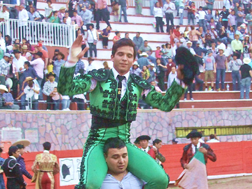 Jerez, Zac.- Plaza "La Jerezana". Primera corrida de feria. Media entrada en tarde calurosa y de cielo despejado. Toros bien presentados de distintas ganaderías, lidiado en el siguiente orden: Dos de Pilar Labastida (1o. y 2o.), manejables; Bernaldo de Quirós (3o.), noble; Marrón (4o.), manejable; Boquilla del Carmen (5o.) el de más calidad y San Marcos (6o.), bueno.