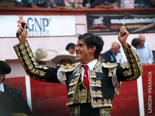Con el quinto de la tarde, el de Aguascalientes trató de ratificar su triunfo, dos faroles y vistosas chicuelinas fue su repertorio con el capote, mientras que con la muleta logró correr la mano por el derecho justo en el terreno de los medios, lamentablemente no estuvo certero con la espada y se retiró a las tablas en silencio.