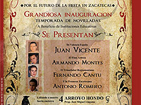 En el atractivo cartel inaugural figuran los nombres del valenciano Juan Vicente, Armando Montes, Fernando Cantú y el torero local Antonio Romero, para lidiar astados de Arroyo Hondo.