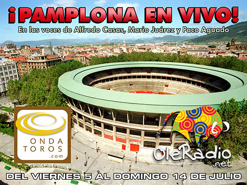 Oleradio.net emitiarán en directo el audio de todos los festejos de la Feria de Pamplona que comienza este viernes con una novillada, y se prolongará hasta el domingo 14 de julio con las tradicionales corridas de toros que son una cita obligada de la temporada europea.