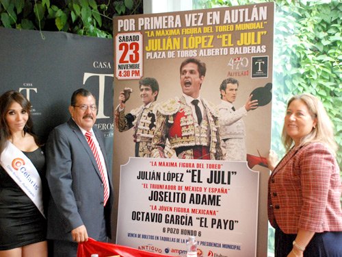 Casa Toreos y autoridades municipales de Autlán, presentaron esta mañana en Guadalajara el cartel de la corrida extraordinaria que habrá el sábado 23 de noviembre en la plaza "Alberto Balderas" para conmemorar el aniversario 470 de la fundación de esta emblemática localidad del sur de Jalisco.