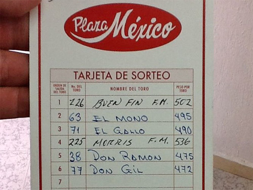 Pasado el mediodía fue celebrado el sorteo de los toros de Marco Garfias que serán lidiados hoy en La México por los diestros Alfredo Gutiérrez e Ignacio Garibay, mientras que se determinó el orden de los de Fernando de la Mora que enfrentará el rejoneador ibérico Leonardo Hernández.