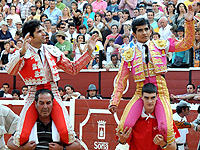 Dos orejas por coleta se repartieron esta tarde Joselito Adame y Cayetano en la plaza de Soria, mientras que Enrique Ponce ha obtenido una oreja, de una encierro noble de Toros de Parladé del que destacaron los toros corridos (fotos y video)