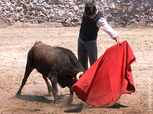 En este, su segundo viaje a España, el diestro visitó ayer miércoles miércoles la dehesa de Alcurrucén, invitado por Pablo Lozano, donde se dio gusto tentando vaquillas y haciendo las cosas con mucha torería, sobriedad y buen trazo, virtudes características de su tairomaquia..