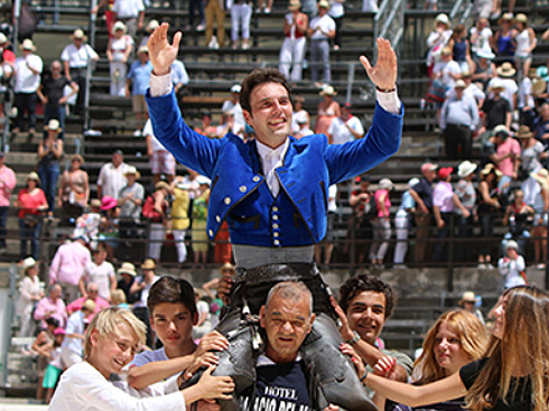 Andy Cartagena obtuvo un rotundo triunfo en la corrida matinal de este lunes en la plaza francesa de Nimes, pues se llevó tres orejas y un rabo, de tal suerte que abrió la Puerta de los Cónsules, mientras que Leonardo Hernández paseó dos orejas y salió en volandas por la puerta de cuadrillas.