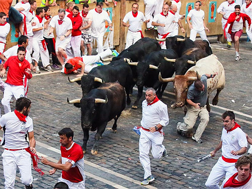 Los toros de la ganadería de Dolores Aguirre protagonizaron el segundo encierro de las fiestas de San Fermín, en Pamplona, el cual fue rápido pues tuvo solamente una duración de dos minutos y cuarenta segundos, además de registrarse solamente tres lesionados.