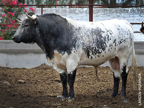 No. 2 "Zihuatleco", cárdeno claro bragado, paliabierto, con 445 kilos. (La Santa Cruz).