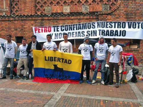 Hoy es el quinto día que pasa en huelga de hambre un grupo de novilleros colombianos, a las afueras de la plaza "Santamaría" de Bogotá, en Colombia, para exigir a las autoridades (tras la decisión del alcalde Gustavo Petro de cerrar la plaza) que se abra el coso y sea reactivada la actividad taurina en la ciudad.