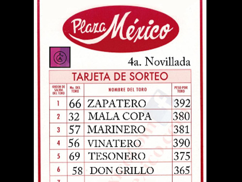 Pasado el mediodía fueron sorteados los ejemplares de la ganadería hidalguense de Maravillas que por la tarde aparecerán en el ruedo de la Plaza México para ser lidiados y estoqueados en lo que será la cuarta novillada de la presente Temporada Chica.