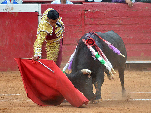 Emiliano Villafuerte “El Moso” está todavía muy verde, pero apunta virtudes que lo pueden impulsar para ocupar lugares importantes. El novillo que sorteó tenía buena condición, pero llegó aplomado al tercer tercio y esto complicó el panorama. El michoacano anduvo insistente y en ocasiones quizá "ahogó" a su oponente, pero cuajó varios derechazos estupendos, de mano baja y temple lento, así como detalles de torería.
