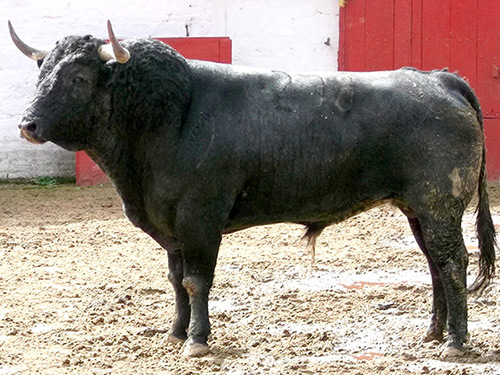 No. 338, negro bragado, cornidelantero, con 505 kilos.