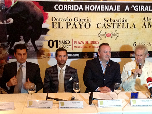 En la conferencia de prensa estuvieron personajes de la sociedad tijuanense como Miguel Ángel Badiola Montaño, presidente del Comité de Turismo y Convenciones, COTUCO; el maestro Giraldés; el matador Alejandro Amaya; Luis Sayeg, director adjunto de Casa Toreros; el promotor taurino y coordinador general de esta corrida, Andrés Luján Valladolid, de Grupo Plascencia patrocinador de este evento, y Juan José "Tana" Plascencia.