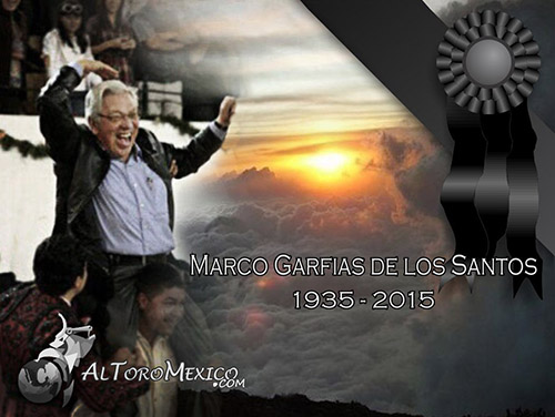 Marco Garfias se distinguió por su gran amabilidad, así como la seriedad de sus tratos. El amor al campo y al toro lo desarrolló con tanta pasión como sus hermanos, con los que ha conformado una importante trilogía de ganaderos potosinos. Desde aquí enviamos nuestro más sentido pésame a su viuda, la señora Cristina Canovas Rebling, así como a sus cuatro hijos: Marco, Roberto, Cristina y Alejandra. Descanse en paz.