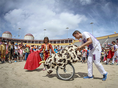 Una vez finalizada la lidia, todos los niños pudieron bajar a la arena para participar en la actividad "Vamos a jugar a toros", del empresario español Ignacio Ríos, que les ofrece la ocasión de disfrazarse de toreros e imitar a diestros, "cavaleiros" y picadores ante los aparatosos carretones que simulan las embestidas de las reses.