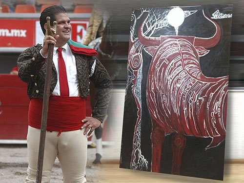 El forcado Arturo Castro ha cedido un óleo de su autoría, con la finalidad de recaudar fondos para poder seguir ayudando al forcado Juan Manuel Leal "El Rodman", lesionado gravemente el sábado pasado en la corrida de San Juan del Río. Se trata una obra muy llamativa, con la imagen de un toro de color rojo, en fondo negro, y que se titula "Amor eterno". El cuadro mide 120 x 185 centímetros, y tiene un costo de 15 mil pesos. El dinero de esta venta irá a parar a manos de la familia de El Rodman, que está muy agradecida con las distintas muestras de cariño que han recibido. El celular de contacto para recabar información sobre la venta del óleo es 442 125 7434.