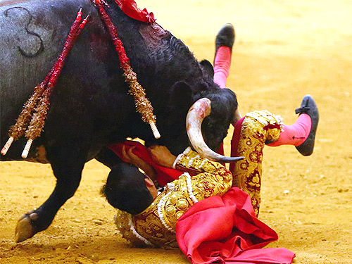 "Durante la lidia del sexto toro, el diestro Joselito Adame, de 26 años de edad, sufre herida por hasta de toro, en el muslo derecho, cara interna, tercio inferior, con dos trayectorias, una ascendente y hacia adentro, de 22 centímetros, que provoca destrozos musculares llegando hasta el fémur, y otra trayectoria, descendente, de 10 centímetros, hacia la rodilla, sin interesar la articulación.