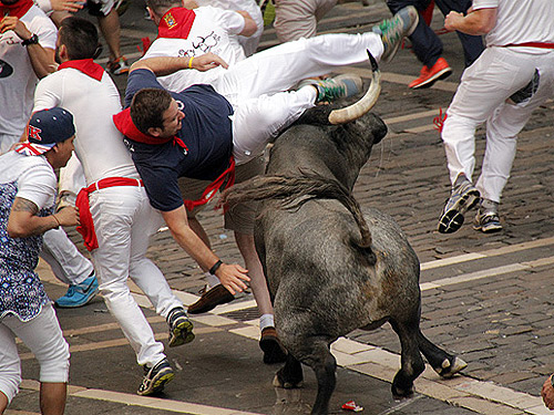 Hubo diversas cogidas y momentos que rayaron en lo dramático. La cifra final es de cuatro personas trasladadas al Complejo Hospitalario de Navarra debido a heridas por asta de toro. De éstas cornadas, una fue en glúteo y tres más en piernas; una de éstas de gravedad, a un corredor norteamericano.