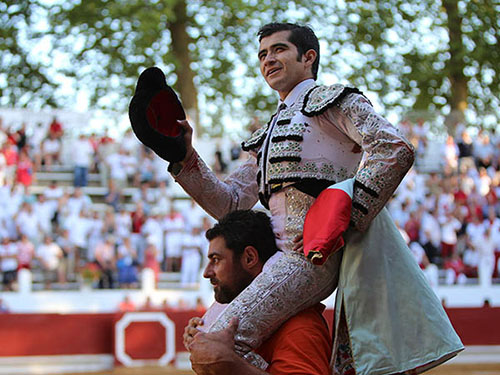Una triunfal reaparición vivió Joselito Adame esta tarde en la localidad francesa de Saint Vicent de Tyrosse, luego de recuperarse de la cornada sufrida el 28 de junio en Burgos, pues le cortó una oreja a cada toro y conquistó a la postre la salida en volandas.