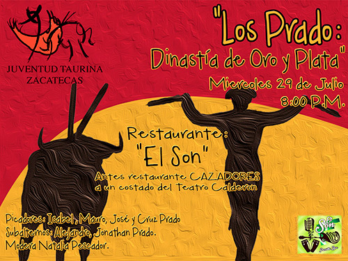 A esta tertulia están invitados los picadores Mauro, Isabel, José y Cruz, así como los banderilleros Alejandro y Jonhatan, todos de apellido Prado. La cita es en el restaurante "El Son" (antes "Cazadores"), ubicado a un costado del Teatro Calderón, en el Centro Histórico de Zacatecas.