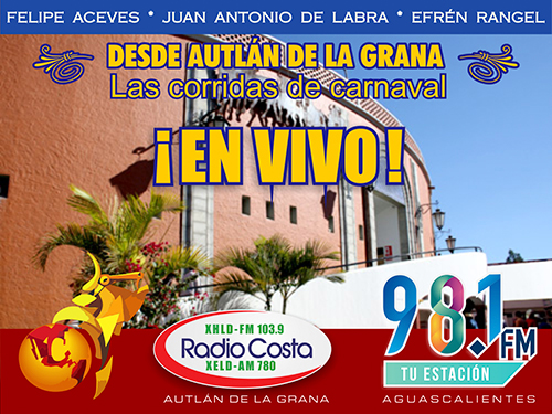 Radio Costa y Al Toro México se unen en un esfuerzo informativo para transmitir en vivo las cuatro atractivas corridas del Carnaval de Autlán, que se llevarán a cabo entre el sábado 25 y el martes 28 de febrero, desde la plaza "Alberto Balderas" de dicha localidad jalisciense.