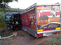 El camión que transportaba los caballos de rejoneo de Diego Ventura sufrió un grave accidente a las cinco y media de esta madrugada, en el kilómetro 355 de la autovía A-4, a la altura de la localidad cordobesa de Montoro.