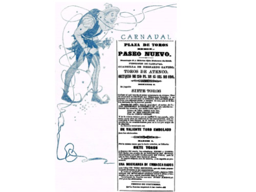 “Si como se verificó en el Carnaval pasado, algunas PERSONAS DE MÁSCARAS quisieren entrar a picar y banderillar un toro, estará prevenido éste al efecto. La función, ya saben, empezará a las cuatro".