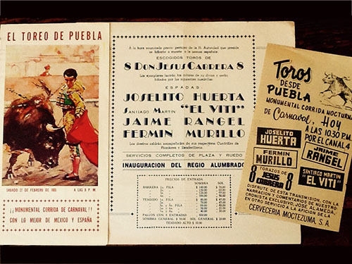 A simple vista es como un papel olvidado. Llama la atención su colorido, pero nada más. Lo único que lo une al presente es una fecha: 27 de febrero, aunque este año caerá martes y aquel de 1965 fue sábado. El programa, bastante bien conservado, anuncia una corrida de toros: "Inauguración del regio alumbrado" de El Toreo de Puebla (gran plaza, lamentablemente demolida). A partir de ahí los recuerdos se desperezan, empiezan a cobrar vida y, de repente, ese pasado remoto ha emprendido el vuelo y despliega hacia el presente sus alas por un efecto parecido al de la magdalena cuyo aroma inspiró a Marcel Proust "En busca del tiempo perdido", su obra capital. Vale la pena seguir adelante.