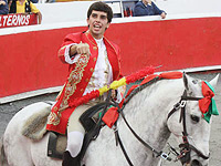 El rejoneador portugués alternó en esta corrida con el caballista mexicano Gastón Santos, que saludó en el tercio en su primero y escuchó un aviso tras dar muerte al toro que cerró plaza.